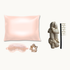 מארז טיפוח מפנק מכיל בתוכו ציפית, כיסוי עיניים, גומייה בצבע ורוד + מסלסל שיער ללא חום בצבע שמפנייה.